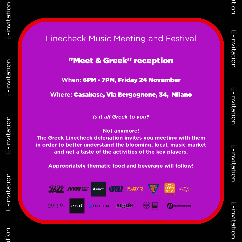 “Is it all Greek to you? Not anymore.”  That was the line that welcomed more than 60 international delegates to Meet & Greek, a lively reception held on Friday 24 November at Casabase during the Linecheck Music Meeting and Festival in Milan. Organised by MESO Events, in collaboration with Milano's Music Innovation Hub, the event marked the first concerted representation of Greek music companies and organisations at a major European music conference. It was part of a broader initiative to support the international promotion and export of Greek festivals, music startups, labels, and promoters. The Greek delegation featured a "strong lineup" including amongst others Athens Music Week, Athens Jazz, Fuzz Club, INDIY, MOOD, Orfium, Release Athens, Stay Independent, Stegi Radio, Plissken Festival, offering a taste of the country’s diverse and forward-looking music ecosystem. Alongside thematic food and greek drinks, the event created space for meaningful dialogue, new connections, and future collaborations. It successfully achieved its purpose of connecting the Greek scene with European professionals in a direct and accessible way. It was the latest step in a growing effort to build stronger and lasting bridges for Greek music across borders. It connected talent, ideas, and opportunities throughout Europe and set the stage for what comes next. More about Music Innovation Hub & Linecheck Music Meeting and FestivalA sound of Greece in Milano Linecheck 2023